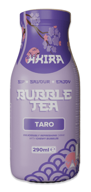Ready to drink traditional boba tea by Akira. This is classic taro flavoured milk tea, a refreshing drink with chewy bubbles.